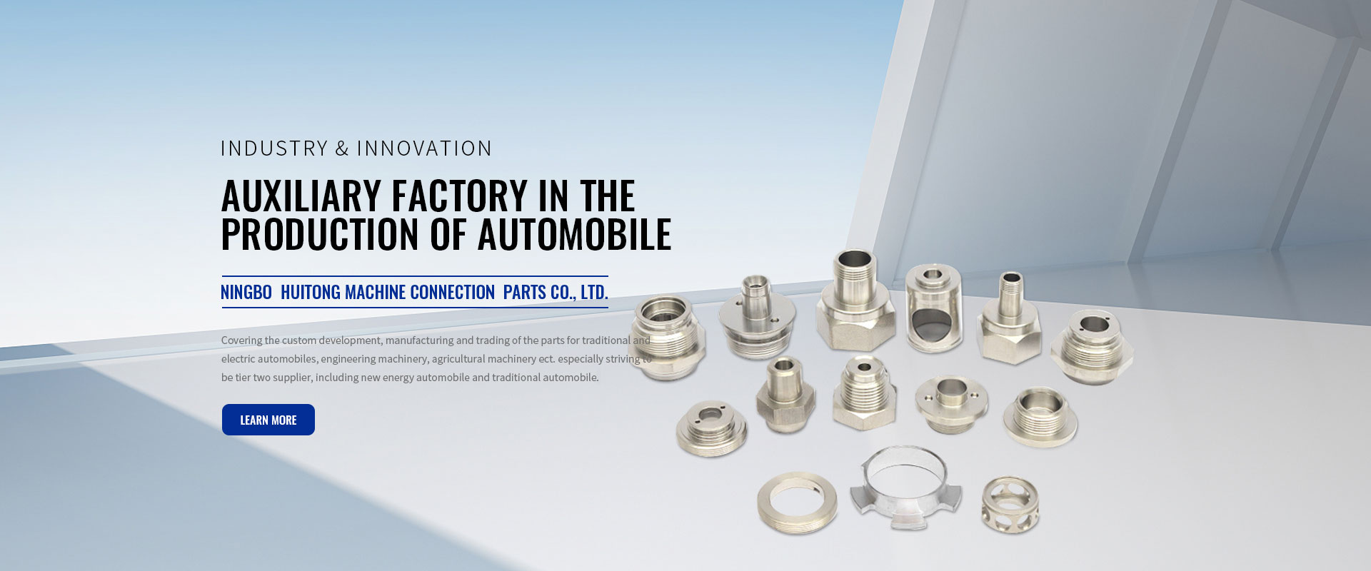 Ningbo Huitong Machine Connection Parts Co., Ltd. covers the custom development, manufacturing and trading of the parts for traditional and electric automobiles, engineering machinery, agricultural machinery ect. especially striving to be tier two supplier, including new energy automobile and traditional automobile. It involves automotive thermal management system, cooling system, air conditioning system, brake system, hydraulic piping system, rail transit system and hydrogen-related automotive piping system, etc. For example, precision valve seat, valve body, valve pin, base seat, piston, worm, sensor connector, guide cap, multi-channel pipe fitting, pipe connector fitting, pin, shaft, bolt, special nut ect.